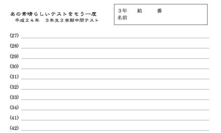 ということで、「テストに登場した英文をもう一度書いてみよう!」と取り組んでみたのが、この「あの素晴らしいテストをもう一度」というプリントです。なんかネーミングで世代がバレちゃいそうですけど(笑)