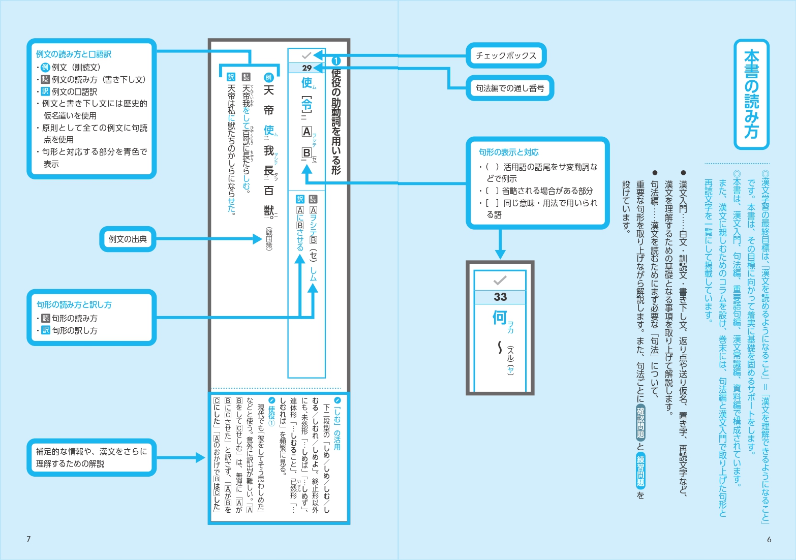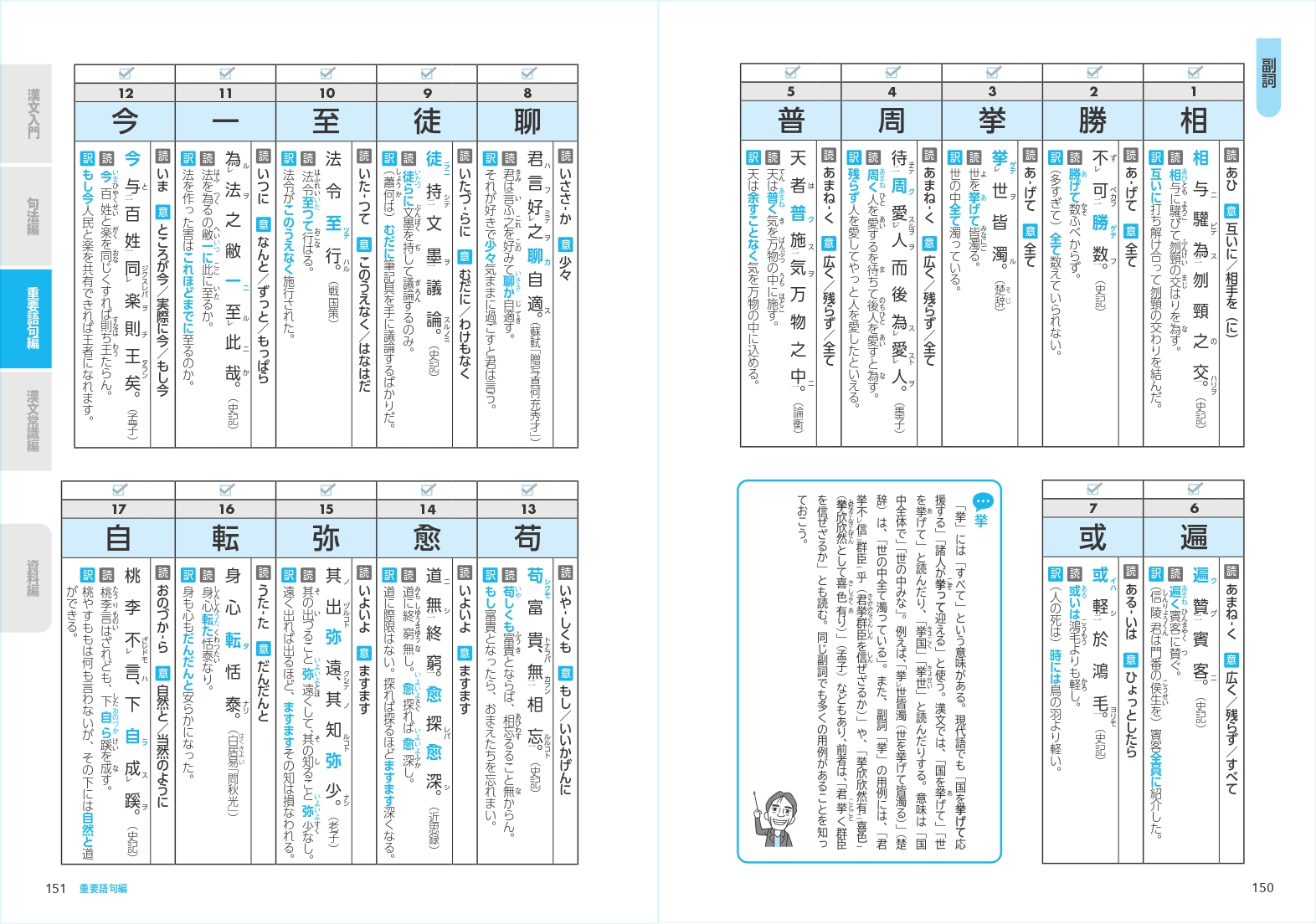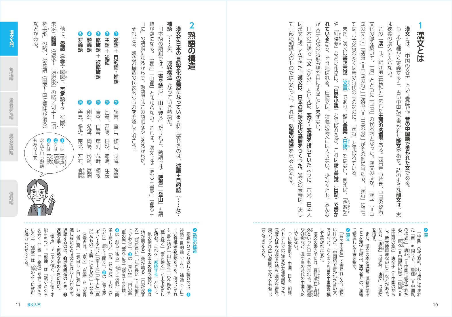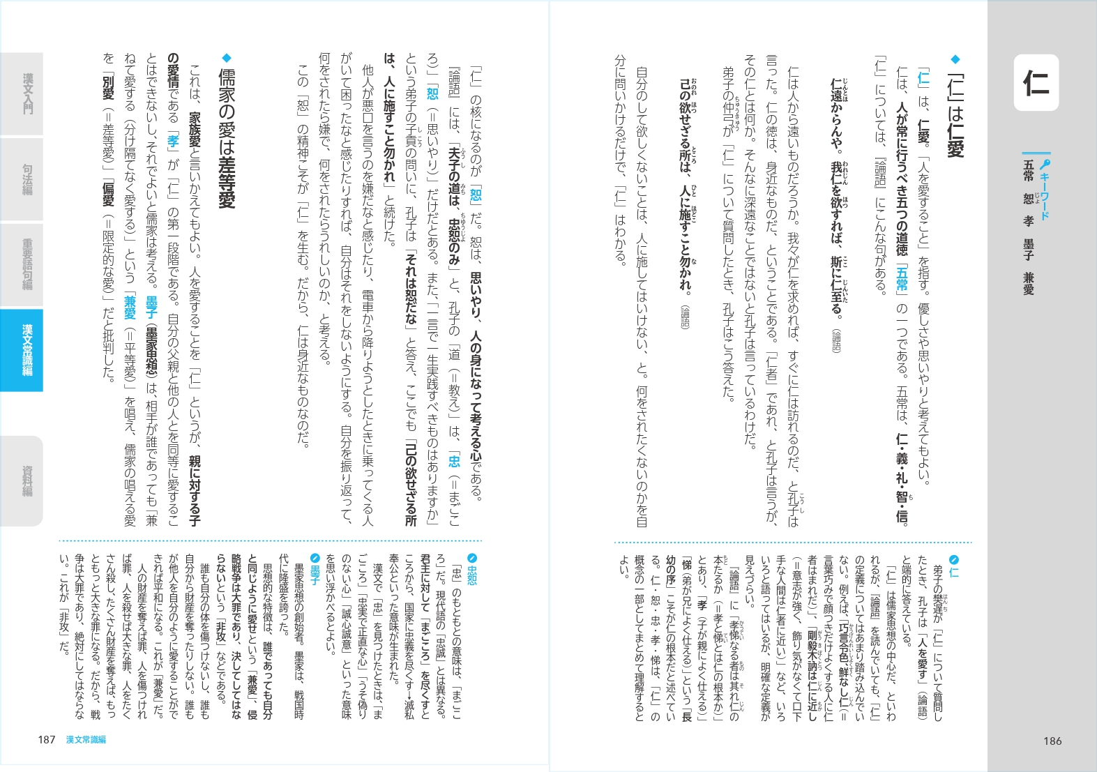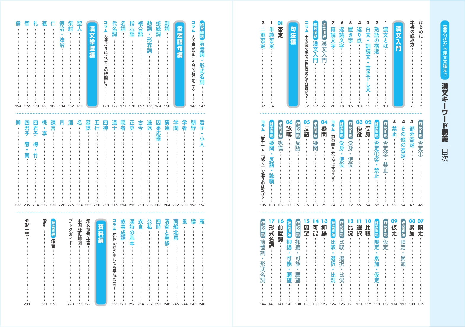●漢文入門、句法編、重要語句編、漢文常識編の四つのパートで漢文のキーワードを