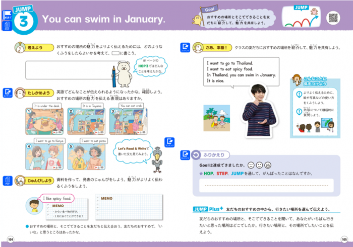 STEPに引き続き、JUMPのページも子どもたちが「もどって」学べるような配置の工夫がされていることに、ハブ先生は気づいたようです。「もどる」工夫によって、子どもたちが自分に合った学びを見つけて、取り組もうとする姿がみられました。