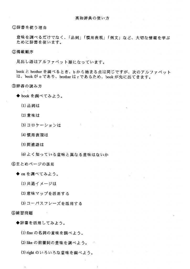 このように、『エースクラウン英和辞典』の優れた点を授業内で活用することによって、ゆくゆくは生徒個々人が能動的に辞書の意味以外の項目に注目し、情報を得られる下地を作りました。